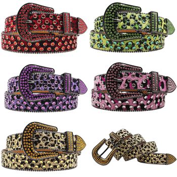 Ban Đầu Punk Của Phụ Nữ Leopard Vành Đai Với Đầy Đủ Rhinestone Trang Trí Y2K Châu Âu Mỹ Phong Cách Đầy Đủ Rhinestone Khóa Làm Hợp Kim